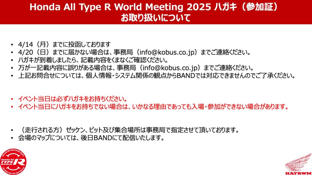 Honda All Type R World Meeting 2025へ参加される皆様は、BANDへの参加が必須となっております。